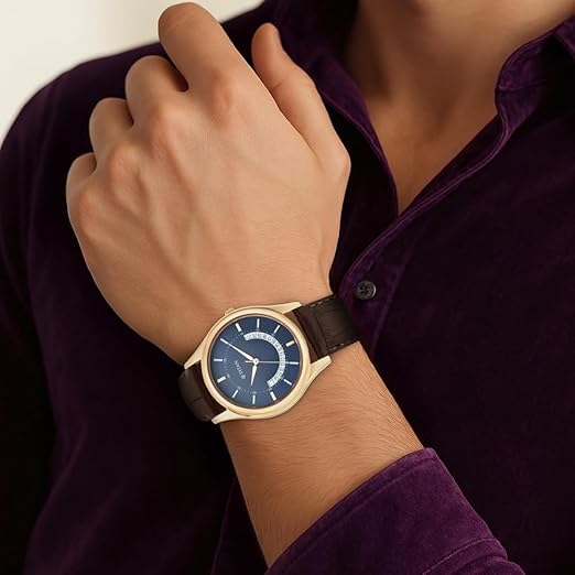 This multifunction watch for men has silver dial enclosed within a round, metal case with push button, the dial displays plain three hands and has separate dial for day and date, the watch is further enhanced by toughened mineral glass and metal strap secured by z clasp which makes it all the more desirable, it offers a water resistance of 5 atm and comes with a 24-month warranty, this is the watch you grab without thinking twice since it pairs effortlessly with just about everything you already own.