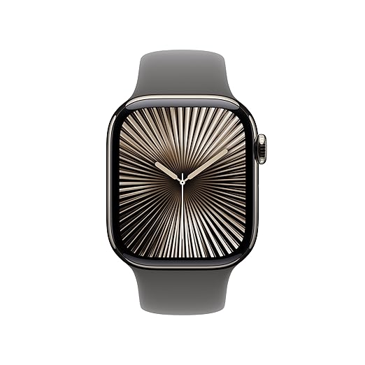 Apple Watch Series 10 [GPS + Cellular 42 mm] Smartwatch with Natural Titanium Case with Stone Grey Sport Band- M/L. Fitness Tracker, ECG App, Always-On Retina Display, Water Resistant