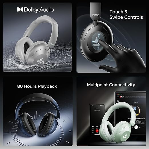boAt Rockerz 650 Pro (2025 Launch),Touch/Swipe Controls,Dolby Audio,80Hrs Battery,2Mics Enx,Fast Charge,App Support,Dual Pair,Bluetooth Over Ear Headphones,Wireless Headphone with Mic (Starry Night)