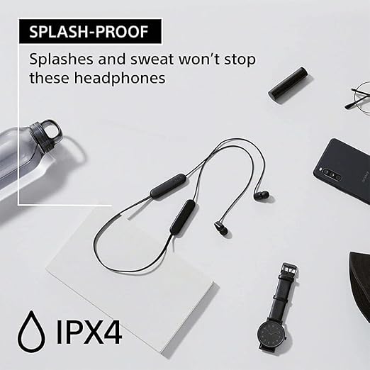 Sony WI-C100 Wireless Headphones with Customizable Equalizer for Deep Bass & 25 Hrs Battery, DSEE-Upscale, Splash Proof, 360RA, Fast Pair, in Ear Bluetooth Headset with Mic for Phone Calls (Black)