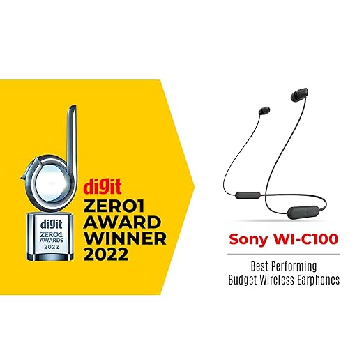 Sony WI-C100 Wireless Headphones with Customizable Equalizer for Deep Bass & 25 Hrs Battery, DSEE-Upscale, Splash Proof, 360RA, Fast Pair, in Ear Bluetooth Headset with Mic for Phone Calls (Black)