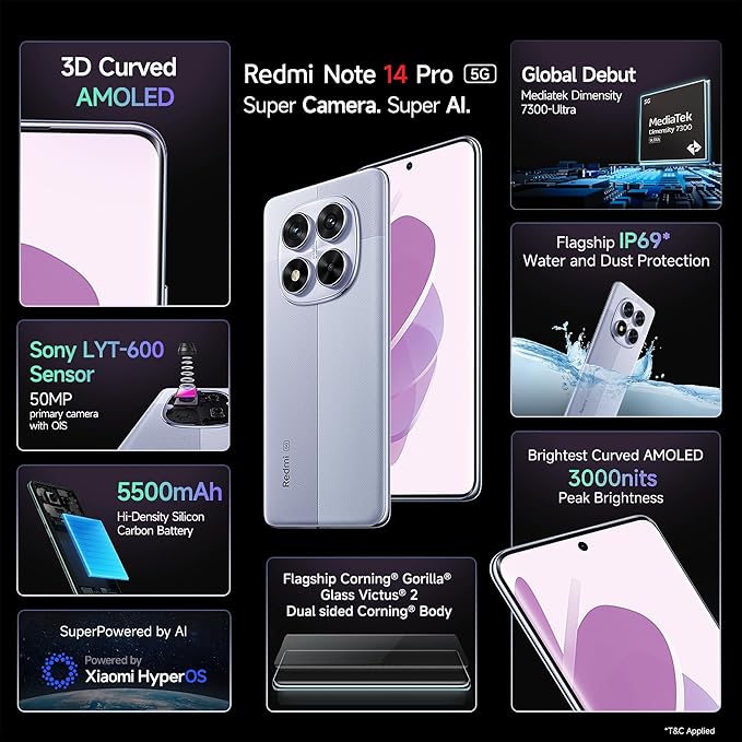 Redmi Note 14 Pro 5G Champagne Gold 8GB RAM 256GB Storage|50 MP Sony Camera Setup|Corning Gorilla Glass Victus 2 | 1.5K 3D Curved AMOLED | Mediatek Dimensity 7300- Ultra | IP68 IP69