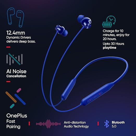OnePlus Bullets Bluetooth Wireless in Ear Z2 Earphones with Mic, Bombastic Bass, 12.4 mm Drivers, 10 Mins Charge, 20 Hrs Music, 30 Hrs Battery Life, IP55 Dust & Water Resistant