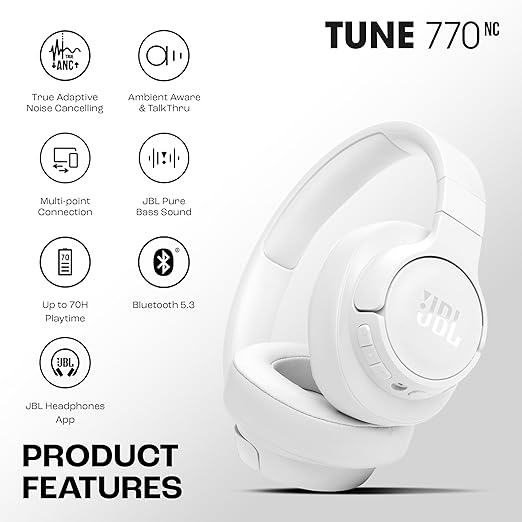 JBL Tune 520BT Wireless On Ear Headphones with Mic, Upto 57H Battery, Speed Charge : 5 Min Charge Gives Up to 3H of Playback, Multipoint Connect, Customizable Bass with Headphones App, BT 5.3